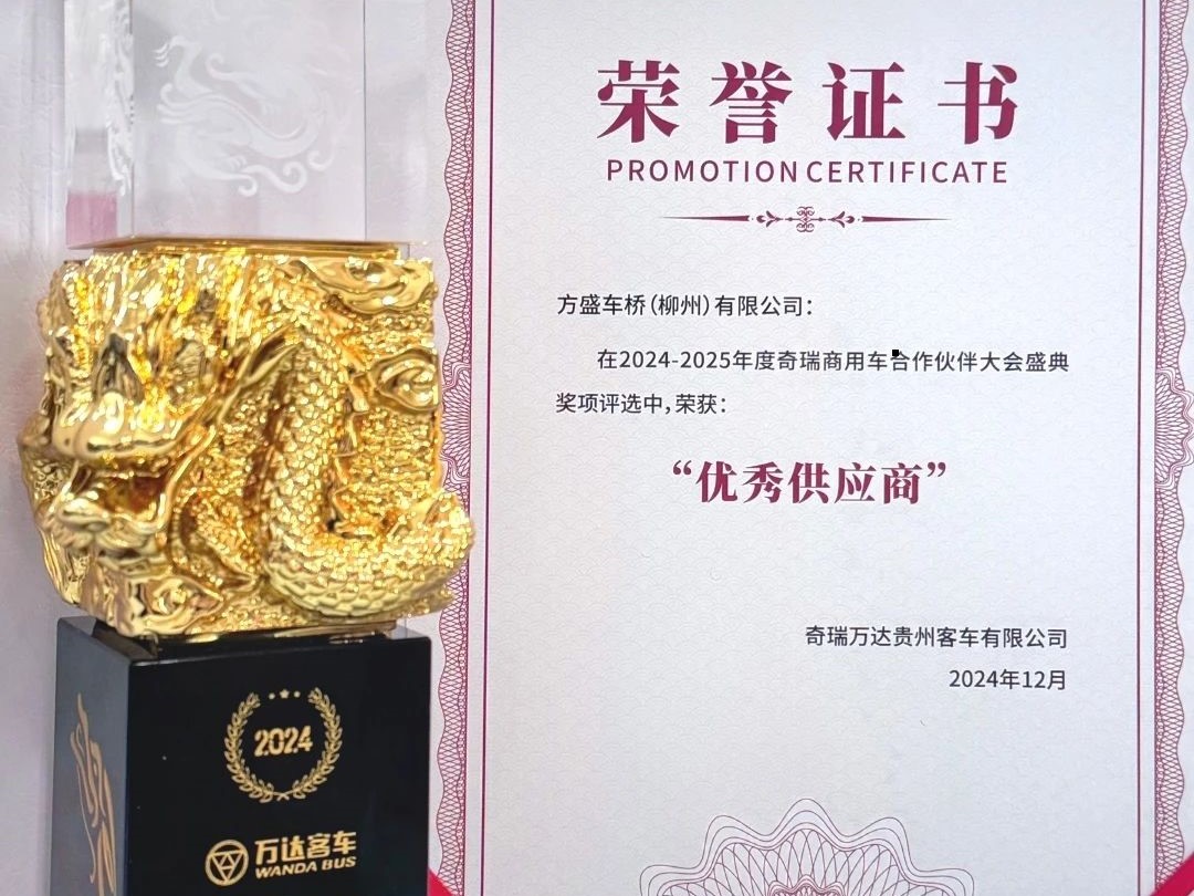 方盛車(chē)橋(柳州)有限公司榮獲萬(wàn)達(dá)客車(chē)集團(tuán)2024年優(yōu)秀供應(yīng)商